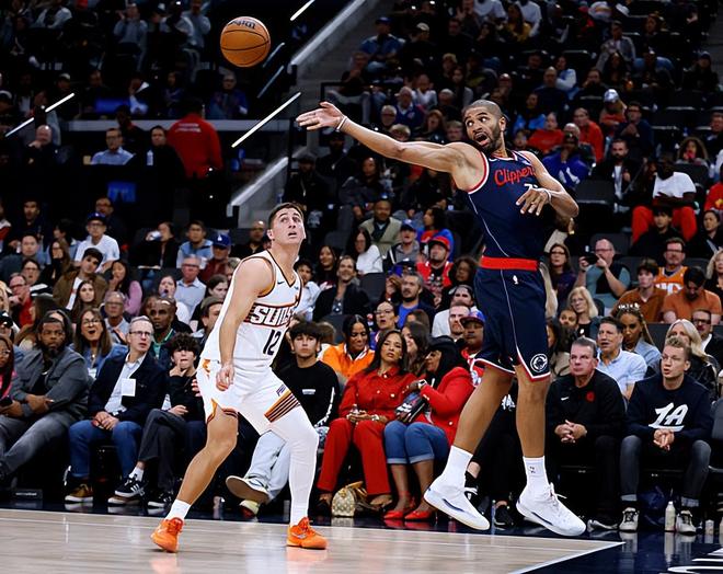 本场比赛中,快船的替补锋线老将尼古拉斯-巴图姆(Nicolas Batum)的表现还是相当突出的。巴图姆全场出场14分47秒,投篮3中1,三分线外3中1,得到了3分3篮板1助攻3抢断2盖帽的全面数据,还有1次犯规,正负值为+1。巴图姆在进攻端的表现马马虎虎,并没有得到太多的分数,也没有起到很好的效果。不过巴图姆在防守端的表现算得上是非常抢眼,他展现出了超强的个人防守能力,他的防守侵略性实在是太高了一些,他确实是在场上起到了决定性的效果,他对于比赛的影响力也是有目共睹的。能够在出场时间有限的情况下打出这样的数据,绝对不是一件容易的事情。即使在进攻端的贡献度比较有限,然而巴图姆还是将自己在丰富的防守经验和出色的防守意识都充分发挥了出来。