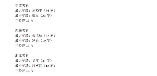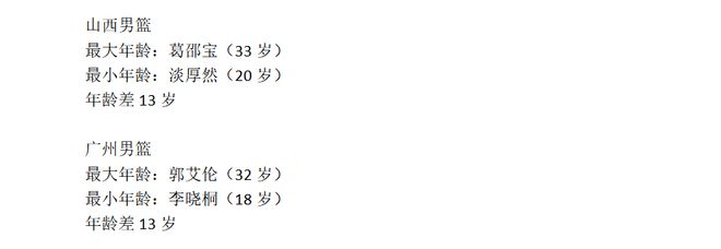 CBA新赛季,各队年龄最大和最小球员